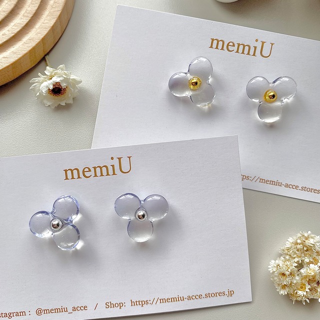 ■商品説明 ガラスのように透明なお花が高見えでかわいいピアスです。 高品質なレジンを重ねることで綺麗な透明に仕上げています。ガラスではないので破損しにくいです。 真ん中にはシンプルにゴールドとシルバーを入れることで、どんなコーディネートにも合わせやすく1個持っているとおしゃれを格上げしてくれるアイテムです。 大きさは約16mm(画像参照)とデイリー使いしやすいところも特徴です。 ーーーーーーーーーーーーーーーーーーーーー ■color ・gold(ゴールド) ・silver(シルバー) ※どちらかお選びください ■pierce ・サージカルステンレス ■size 約16mm ーーーーーーーーーーーーーーーーーーーーー □ご購入前にお手数ですが〈ご購入時のお願い〉の ご確認をお願いいたします。 〈ご購入時のお願い〉↓ https://memiu.base.shop/items/94338567 ┈┈┈┈┈┈┈┈┈┈┈┈┈┈┈┈┈┈