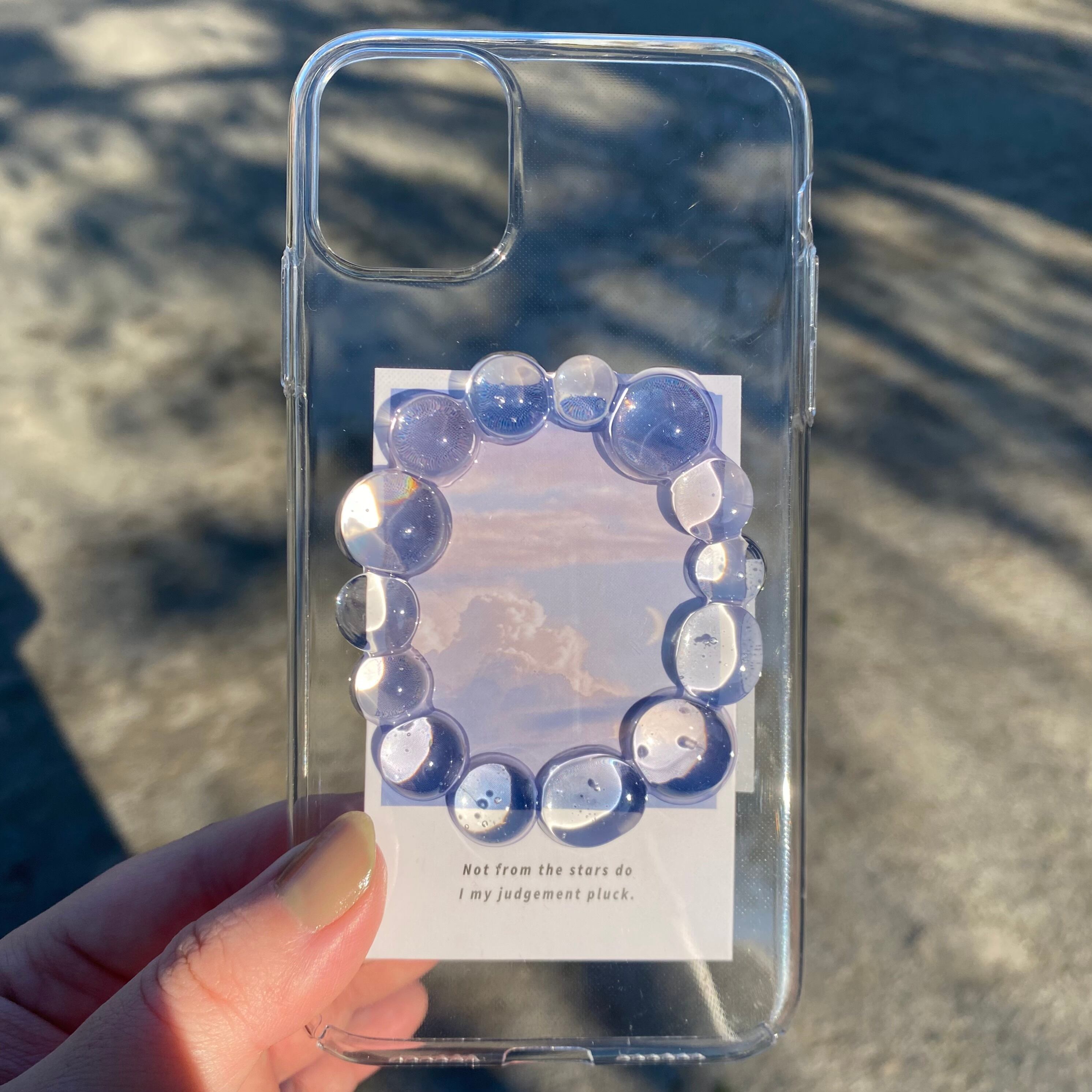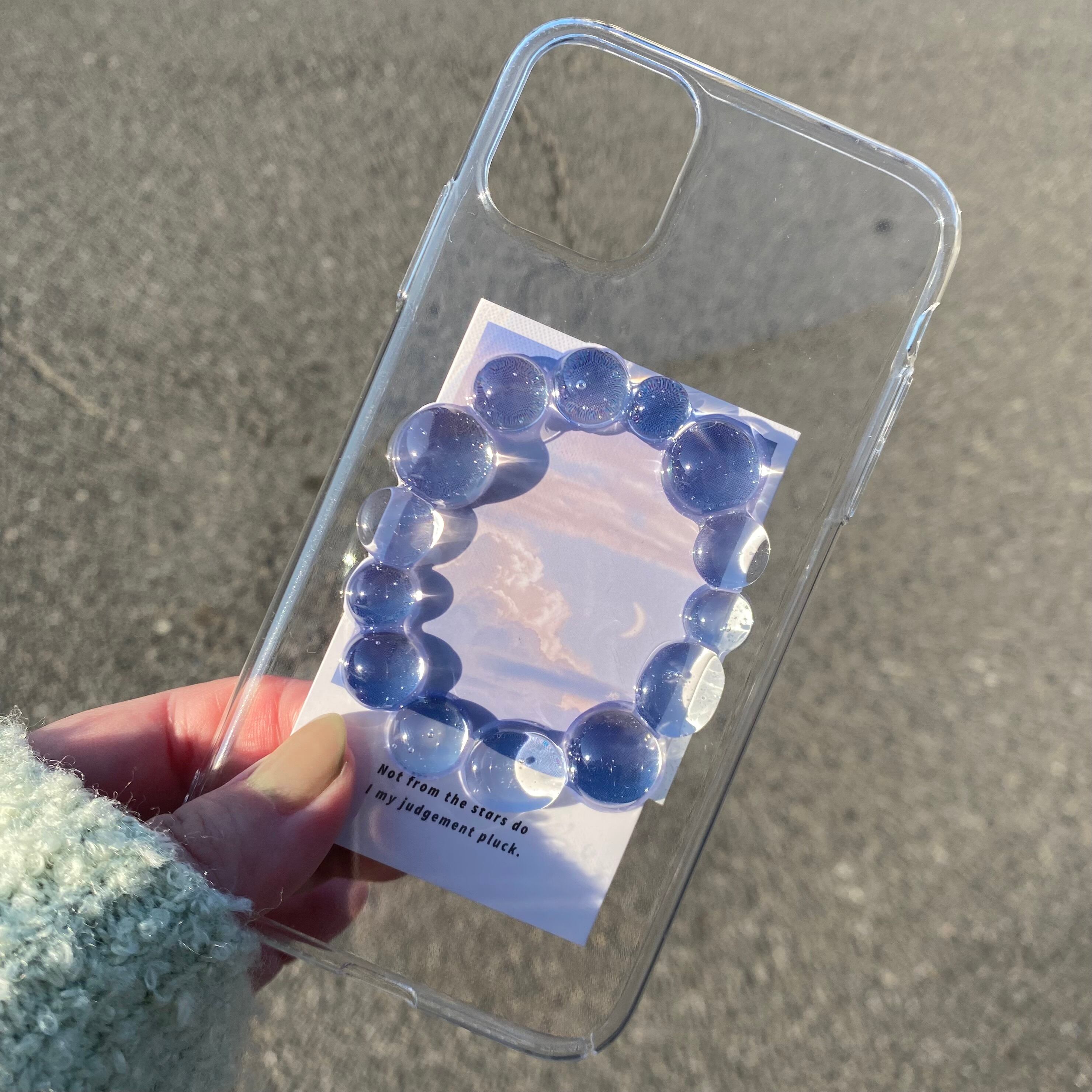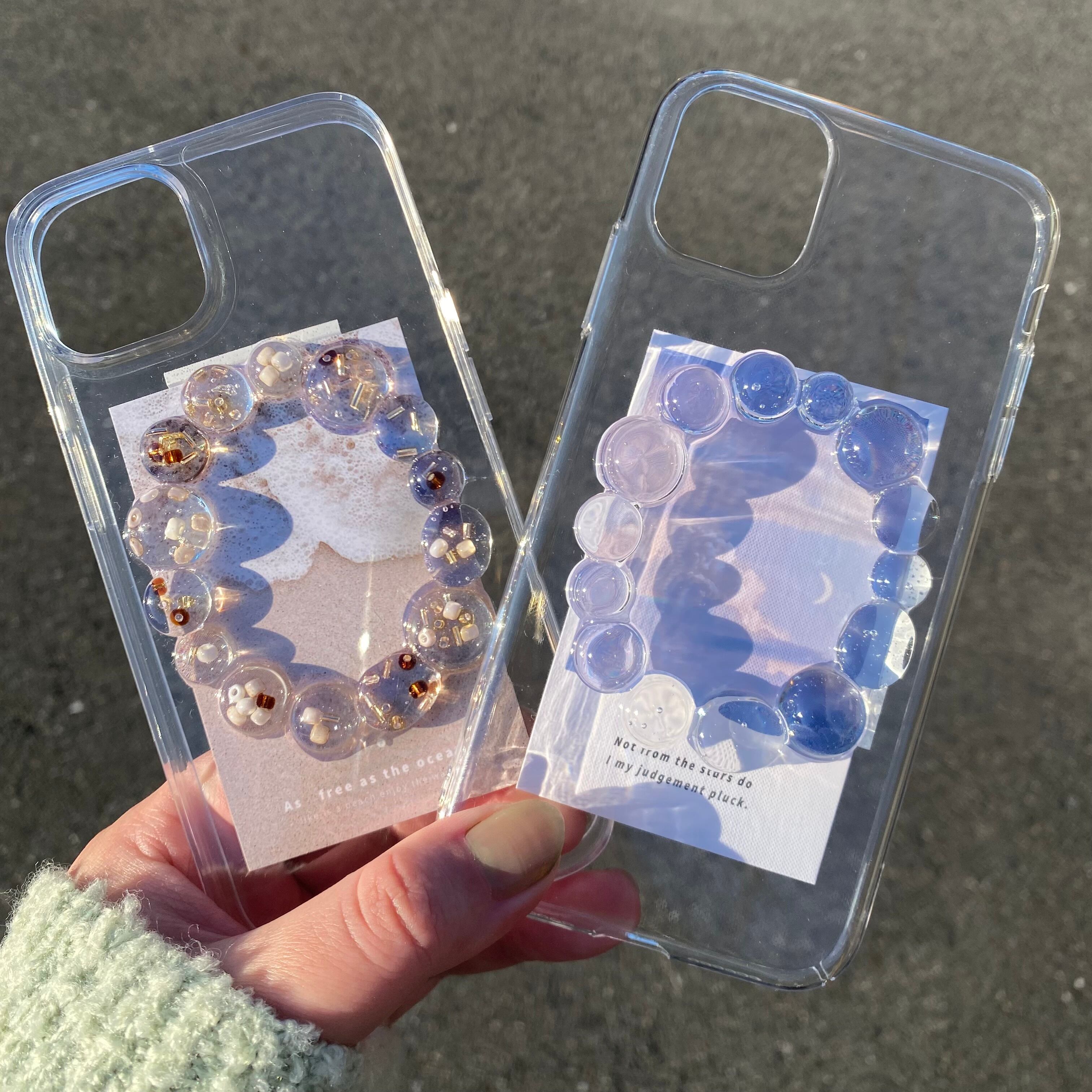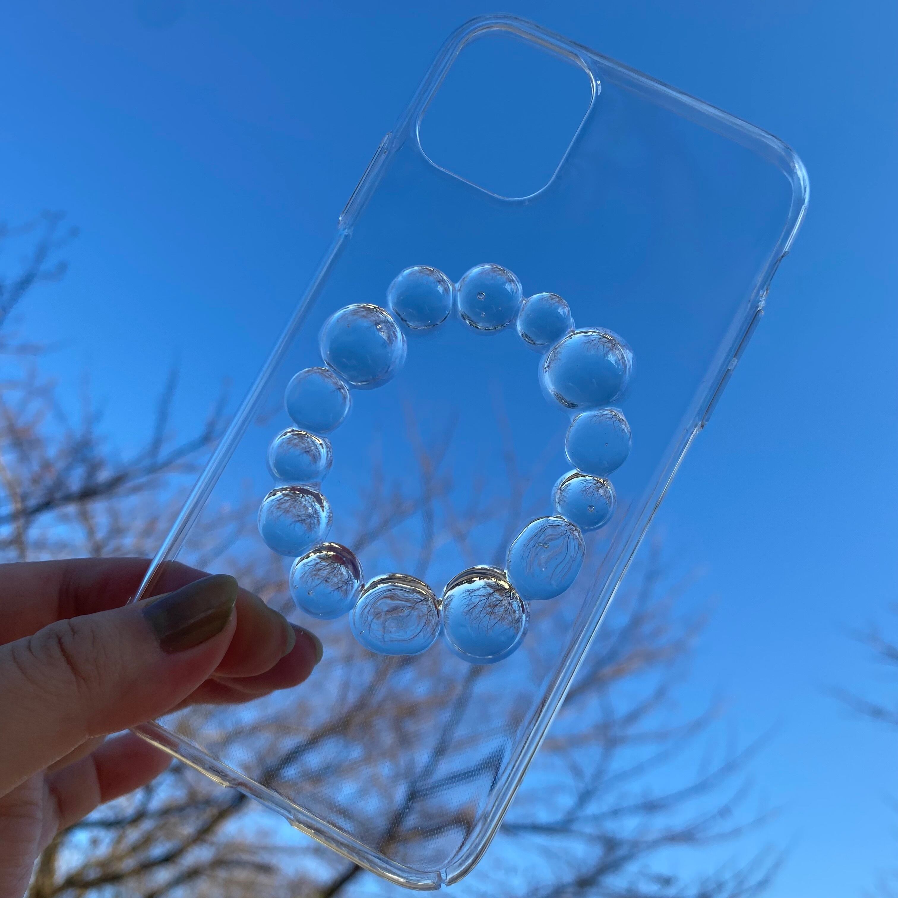 高品質なレジンを丁寧に重ね、透明で艶々の氷のように仕上げたデザインが目を惹くiPhoneケースです。