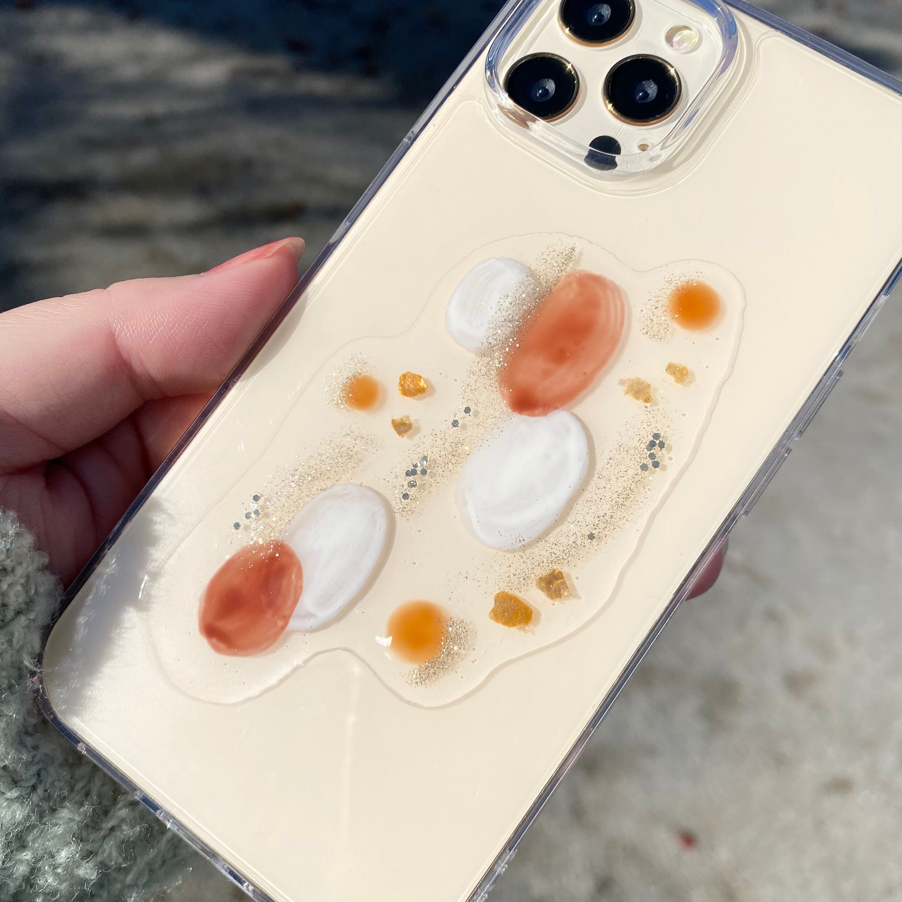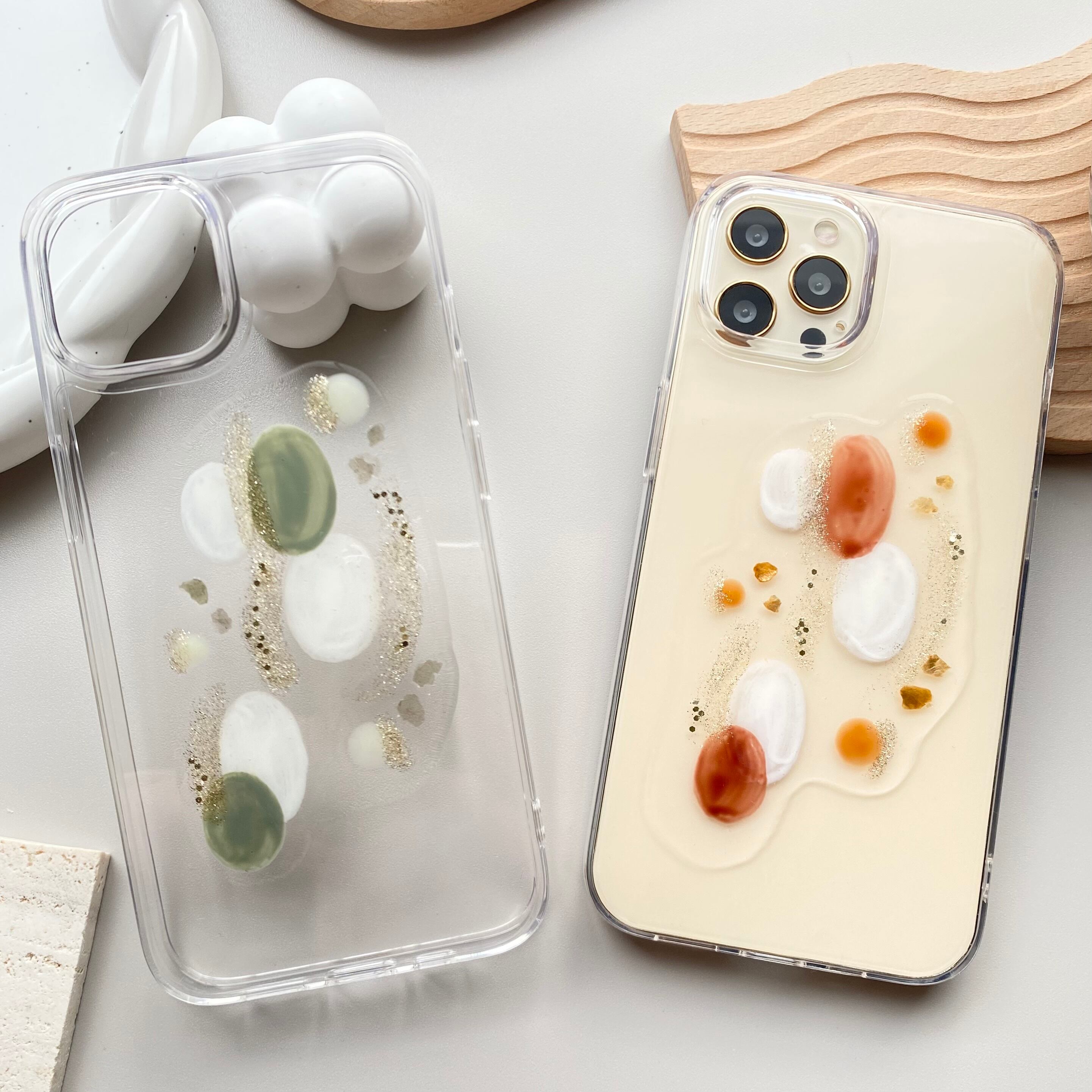 オレンジブラウンをメインカラーに筆のラインも残しながらアートのように仕上げたケースです。